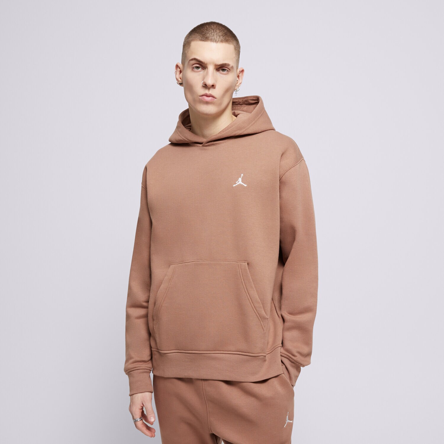 Vsaďte na jednoduchou mikinu Jordan - osvědčí se v každé streetwearové stylizaci. Má hnědou univerzální barvu a jednoduchý střih a doplňuje ji malá výšivka s motivem Jumpman na hrudi. Vypadá skvěle ve sportovních setech s joggery, v casualových outfitech s džíny i v outdoorových stylizacích s cargo kalhotami. Mixujte dle libosti.